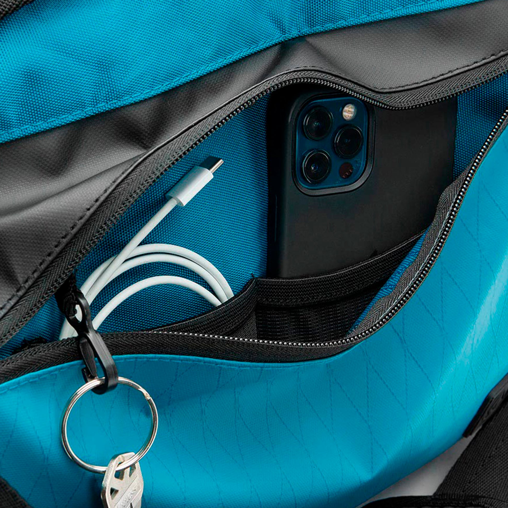• Material: 100% Poliéster 600D with TPE Coating / Polyester X-Ripstop w/ TPE Backing, garantizando resistencia y protección.