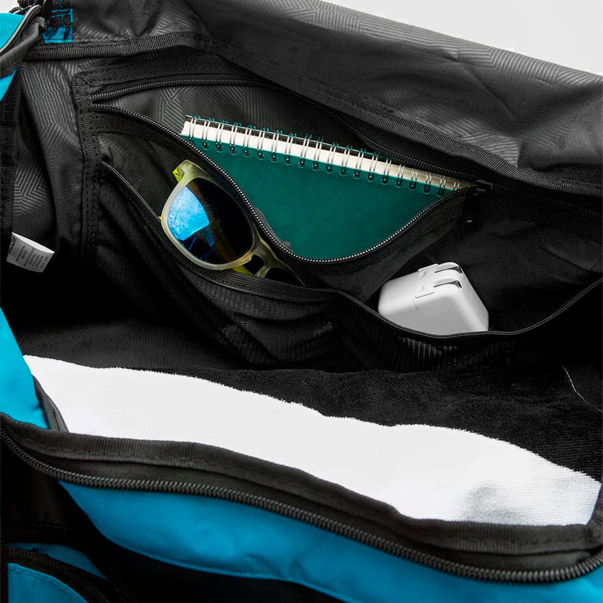 • Bolsillo frontal con cierre, con organización interna para tus accesorios pequeños.