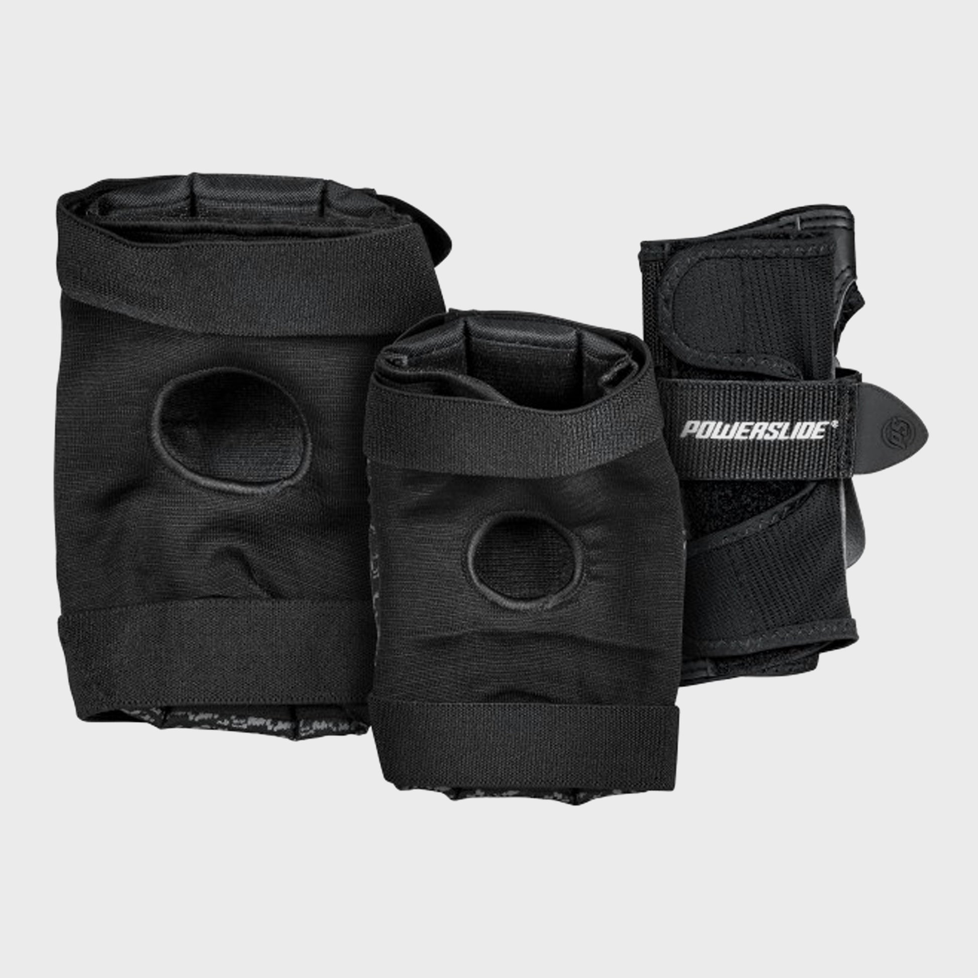 El Powerslide Tripack Standard Black es el set de protecciones ideal para practicar deportes sobre ruedas con seguridad. Incluye rodilleras, coderas y muñequeras con doble placa, ofreciendo máxima protección y comodidad en cada movimiento.