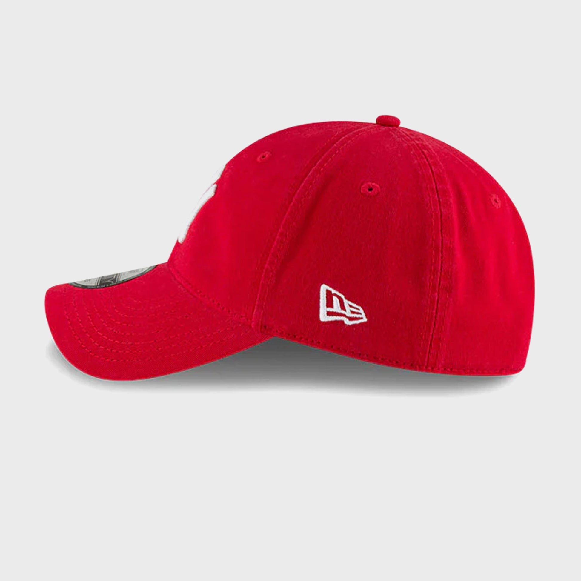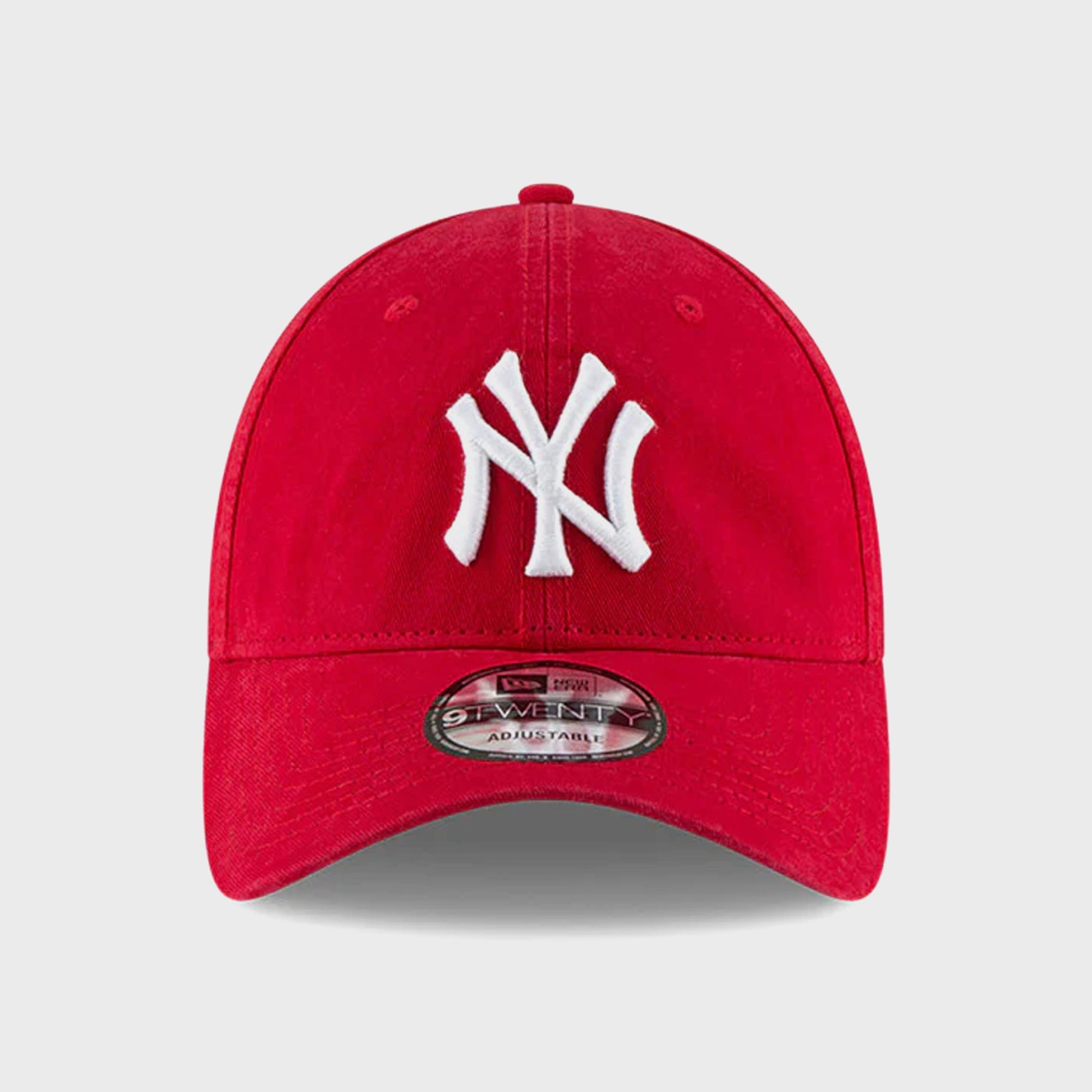 La Core Classic 2.0 en rojo escarlata vibrante destaca por su icónico logo “NY” bordado en blanco. Con silueta 9TWENTY tipo Dad Hat, ofrece un estilo relajado y cómodo para el uso diario.