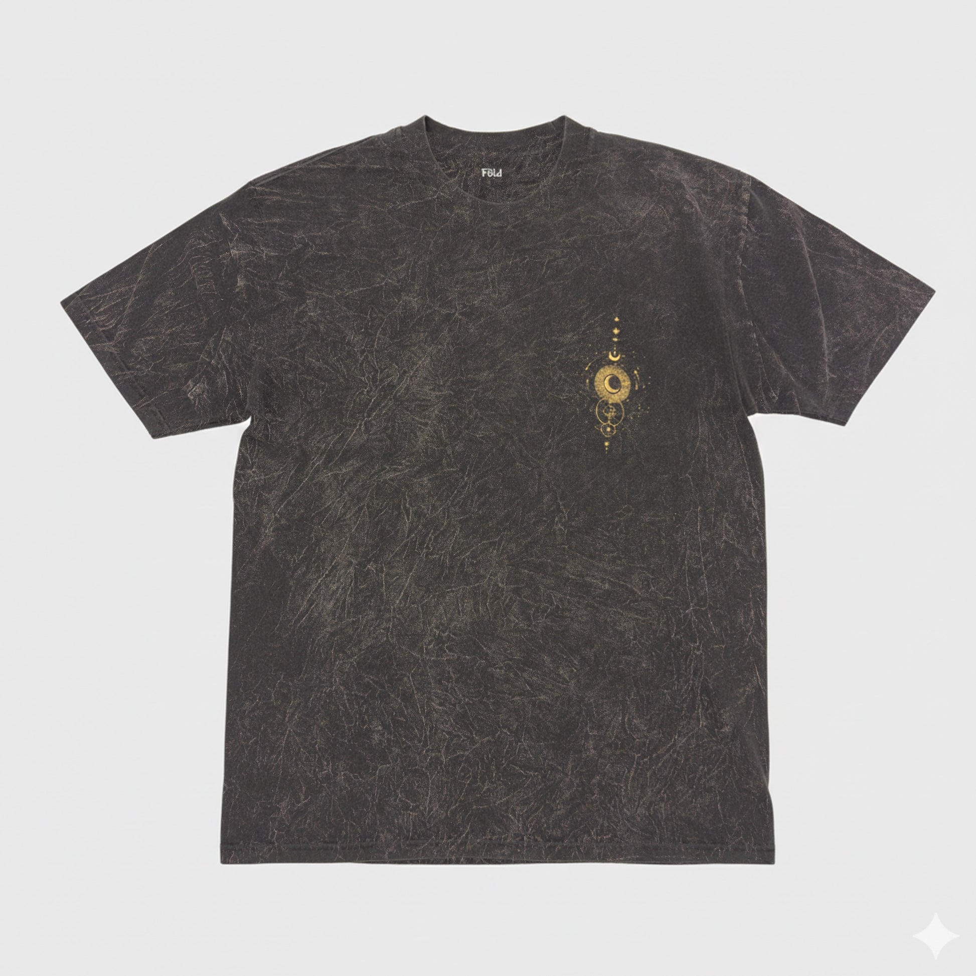• Estampa central en color dorado con diseño gráfico geométrico y astral